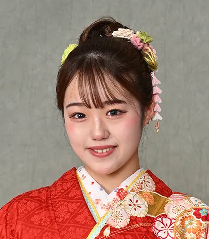 アナウンサーを目指し、振袖の美しさを言葉で伝えたいです。母がハクビの着付け教室に通い始めた事がきっかけで、背中を押してくれました。
